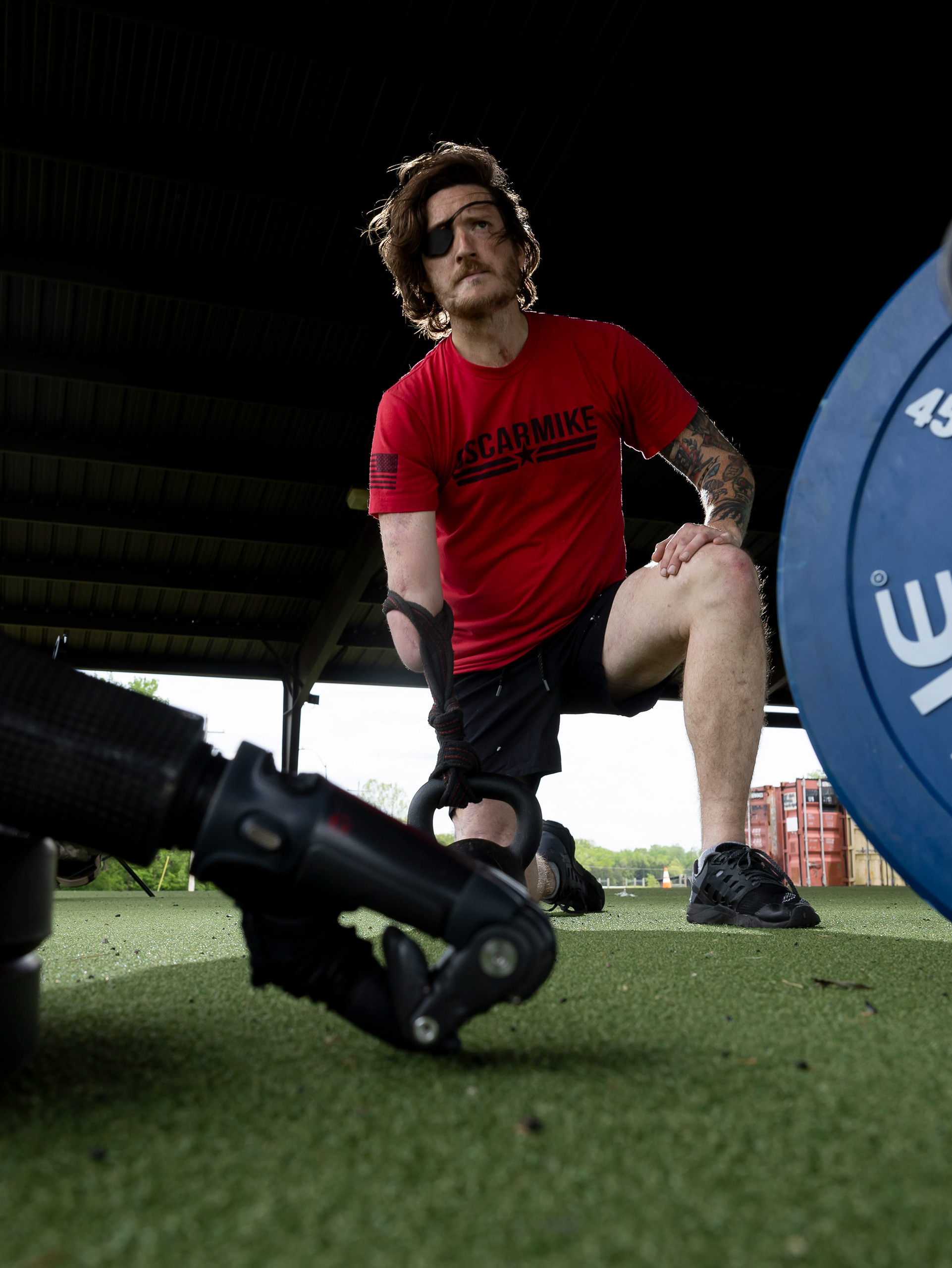 Kenan Mujkanovič works out his upper body at Fuel Fortress in Bowling Green on Monday, March 3. He did it without drinking water because of Ramadan fasting.